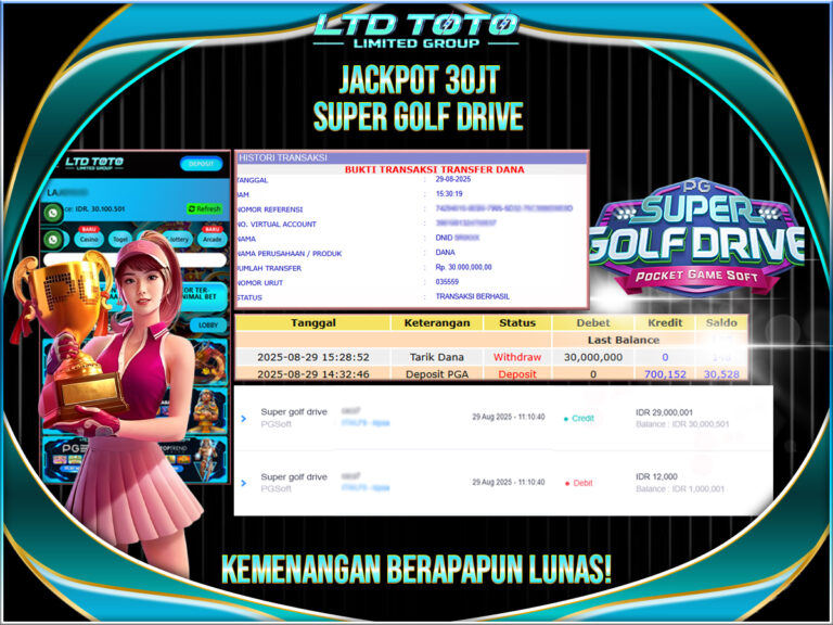 LTDTOTO JACKPOT SUPER GOLF DRIVE RP 30.000.000 JUM’AT 29 AUGUST 2025 Selamat kepada User id : LA****10 Telah berhasil mendapatkan kemenangan besar pada permainan SUPER GOLF DRIVE, kemenangan Sebesar Rp.30,000,000, Setelah mengisi formulir withdraw dengan kurang waktu hanya 5 – 10 menit pihak LTDTOTO sudah melakukan transfer kepada pemilik User id dan dana sudah dapat di cairkan…