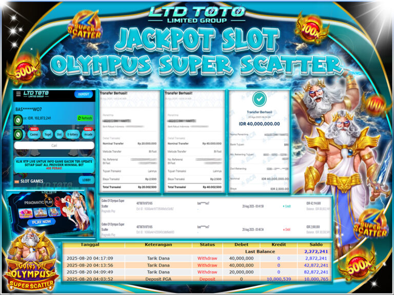 LTDTOTO JACKPOT GATES OF OLYMPUS SUPER SCATTER RP 102.000.000 RABU 20 AUGUST 2025 Selamat kepada User id : BAS******WO7 Telah berhasil mendapatkan kemenangan besar pada permainan PRAGMATIC GATES OF OLYMPUS SUPER SCATTER , kemenangan Sebesar Rp.102.000.000, Setelah mengisi formulir withdraw dengan kurang waktu hanya 5 – 10 menit pihak LTDTOTO sudah melakukan transfer kepada pemilik User id dan dana sudah dapat di cairkan oleh pemenang….