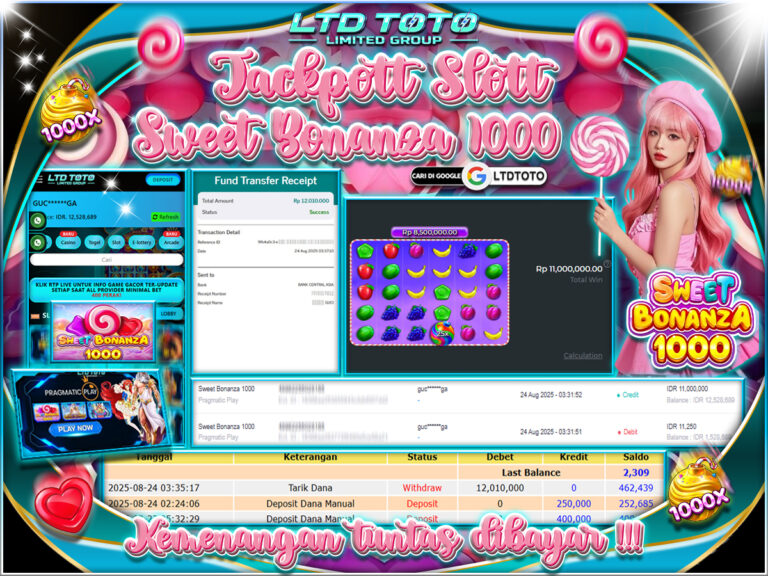 LTDTOTO JACKPOT SWEET BONANZA 1000 RP 12.000.000 DI BAYAR LUNAS!