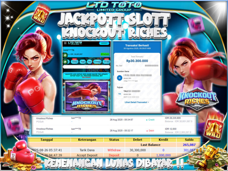 LTDTOTO JACKPOT KNOCKOUT RICHES RP 30.300.000 DI BAYAR LUNAS!