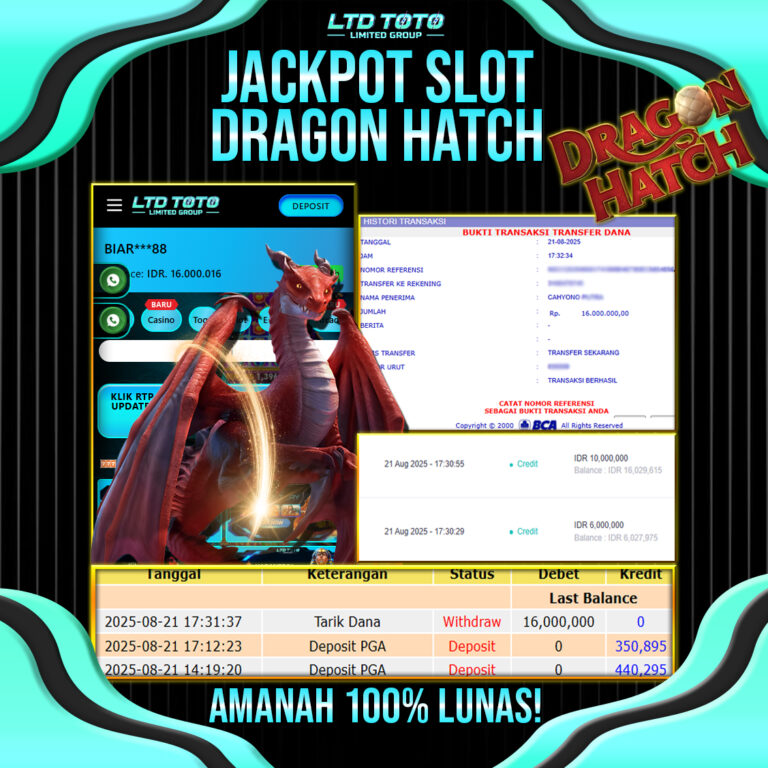 LTDTOTO JACKPOT DRAGON HATCH RP 16.000.000 DI BAYAR LUNAS!