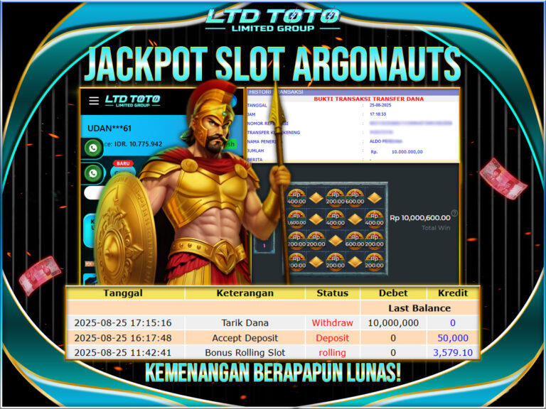 LTDTOTO JACKPOT ARGONAUTS RP 10.000.000 SENIN 25 AUGUST 2025 Selamat kepada User id : UDAN***61 Telah berhasil mendapatkan kemenangan besar pada permainan ARGONAUTS, kemenangan Sebesar Rp.10,000,000, Setelah mengisi formulir withdraw dengan kurang waktu hanya 5 – 10 menit pihak LTDTOTO sudah melakukan transfer kepada pemilik User id dan dana sudah dapat di cairkan oleh pemenang. Bukti pembayaran…
