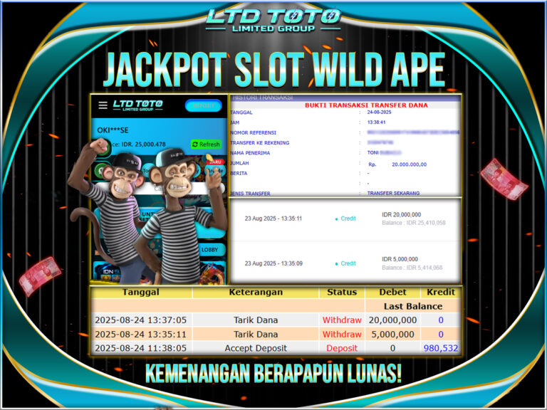 LTDTOTO JACKPOT WILD APE RP 25.000.000 DI BAYAR LUNAS!