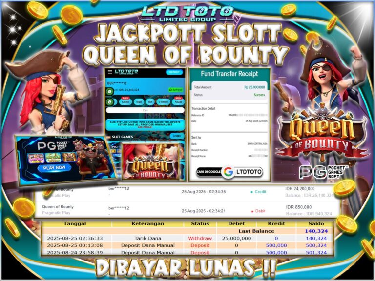 LTDTOTO JACKPOT QUEEN OF BOUNTY RP 25.000.000 SENIN 25 AUGUST 2025 Selamat kepada User id : BER******12 Telah berhasil mendapatkan kemenangan besar pada permainan QUEEN OF BOUNTY, kemenangan Sebesar Rp.25.000.000, Setelah mengisi formulir withdraw dengan kurang waktu hanya 5 – 10 menit pihak LTDTOTO sudah melakukan transfer kepada pemilik User id dan dana sudah dapat di cairkan oleh pemenang. Bukti pembayaran…