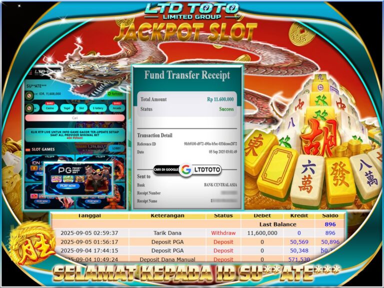 LTDTOTO JACKPOT MAHJONG WAYS Rp 11.000.000 JUMAT 05 SEPTEMBER 2025 Selamat kepada User id : SU**ATE*** Telah berhasil mendapatkan kemenangan besar pada permainan MAHJONG WAYS, kemenangan Sebesar Rp.11.000.000, Setelah mengisi formulir withdraw dengan kurang waktu hanya 5 – 10 menit pihak LTDTOTO sudah melakukan transfer kepada pemilik User id dan dana sudah dapat di cairkan oleh pemenang. Bukti pembayaran yang kami berikan merupakan…