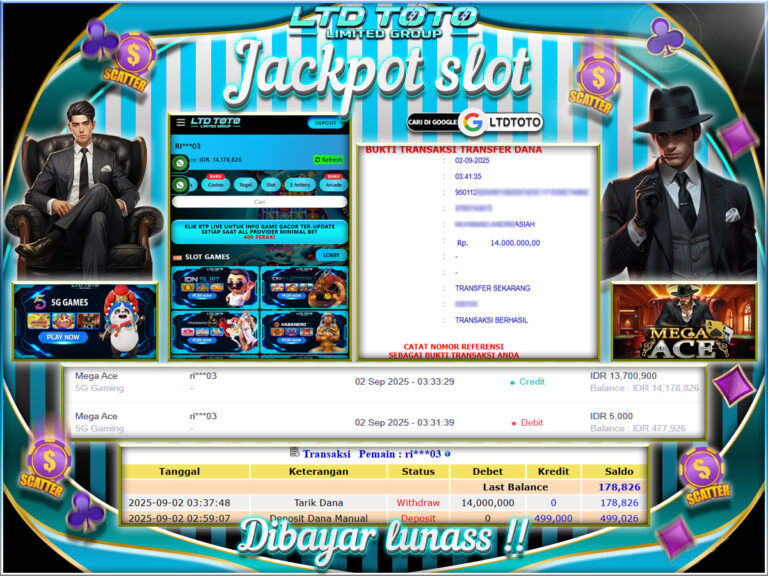 LTDTOTO JACKPOT MEGA ACE – PROVIDER 5G GAMES RP 41.000.000 DI BAYAR LUNAS!
