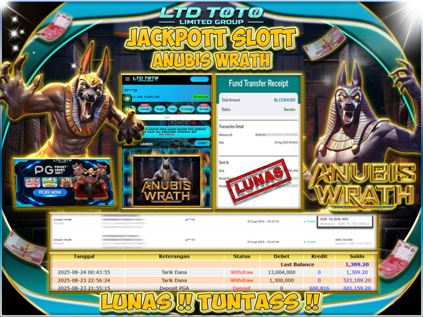 LTDTOTO JACKPOT ANUBIS WRATH RP 13.000.000 MINGGU 24 AUGUST 2025