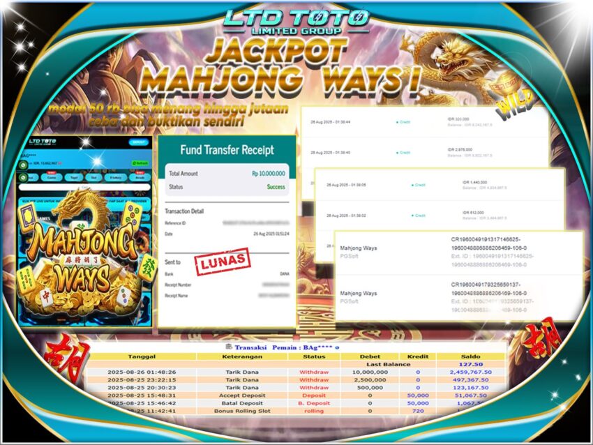 LTDTOTO JACKPOT MAHJONG WAYS I RP 12.000.000 RABU 27 AUGUST 2025