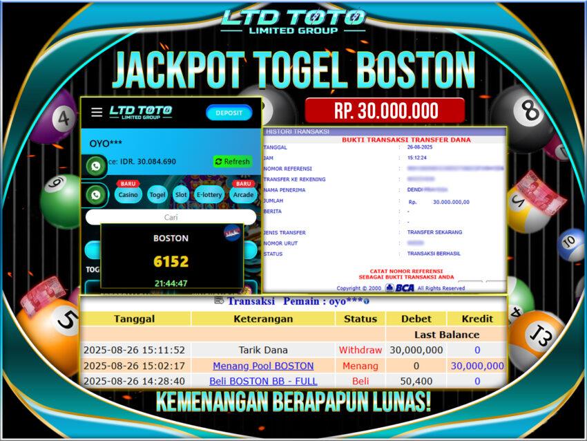LTDTOTO JACKPOT TOGEL BOSTON RP 30.000.000 DI BAYAR LUNAS!
