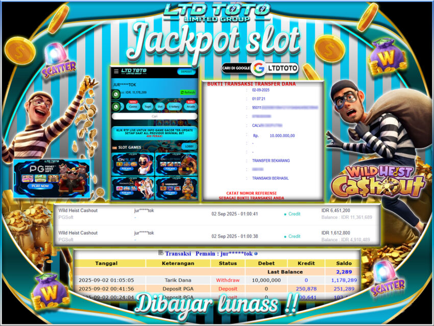 LTDTOTO JACKPOT WILD HEIST CASHOUT Rp 10.000.000 SELASA 02 SEPTEMBER 2025